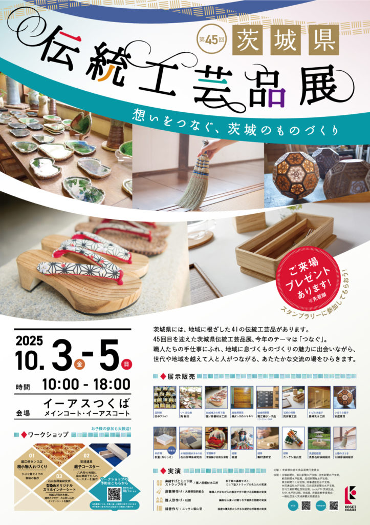 2025年10月3日(金)~5日(日)に、イーアスつくばにて開催される 「第45回 茨城県伝統工芸品展」 に、安達建具株式会社の組子製品を出展いたします。 会場では、いばらき組子を用いた建具や小物を実際にご覧いただける展示のほか、当社職人による 「組子コースターづくり」ワークショップ を実施します。六角形の地組に麻の葉模様を組み込む体験は、お子様から大人まで楽しんでいただける内容です。